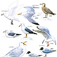 カモメ亜科は、形態と行動特徴によって、大きく三つのグループに分けられる。