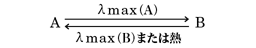 次の式において、Aは無色形(吸収極大波長λ(ラムダ)max(A)が紫外部)で、Bが着色形(λmax(B)が可視部)である(このように、λmax(A)<λmax(B)であることが多いが、逆の例もある)。
