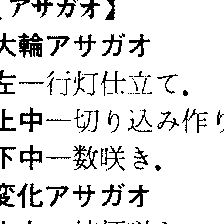 変化アサガオは花が小さいがきわめて変化に富んだ花形をもつ。しかし多くは種子を結ばないため、系統維持がむずかしい。変化アサガオの栽培は親となる系統の種子を播(ま)き、発芽した苗のなかから子葉(しよう)の形の変わった出物(でもの)と称する数本を選び、鉢取りして行う。しかし目的の花は咲くが種子は稔(みの)らないので、つねに親系統の種子を採種保存する必要がある。現在残っている代表的な咲き方には、花弁が細く糸のように裂け、その先に風鈴状の変化弁をつける獅子咲き、花弁が細く裂け筆先状になる菜(さい)咲き、花筒の中にもう一つ花が重なる台(だい)咲きなどがある。