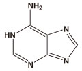 6-aminopurine.C5H5N5(135.13).核酸の一成分で,核酸を加水分解すると得られる.チオ尿素とマロノニトリルから4,5,6-トリアミノ-2-チオピリミジンとし,これからプリン環を形成して段階的に合成するか,シアン化水素とアンモニアから直接合成する.