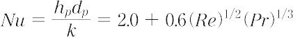 流れにおける運動量,エネルギーおよび物質の移動機構の類似性にもとづいた法則.いま,直径 dp の固体球が流れのなかで静止しており,球と流れとの間に温度差がある場合,球表面での伝熱係数hp はRanz-Marshall式により,