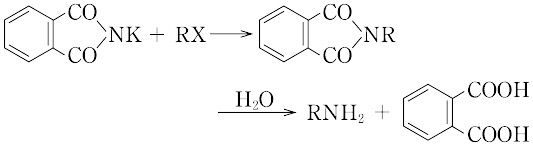 (4)フタルイミドカリウムにハロゲン化アルキルを作用させ、生成物を加水分解する(ガブリエル反応)。