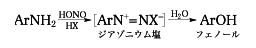 脂肪族第一級アミンは亜硝酸と反応して窒素を発生し,アルコールやアルケンなどを生じるが,芳香族第一級アミンはジアゾニウム塩になる.