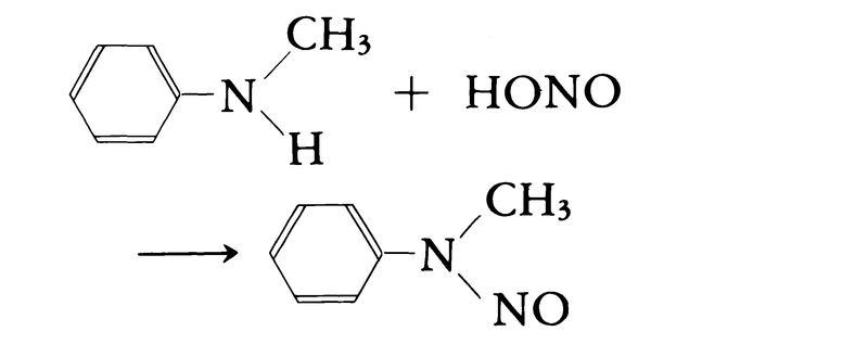 R2NH+HONO─→R2N-NO+H2O