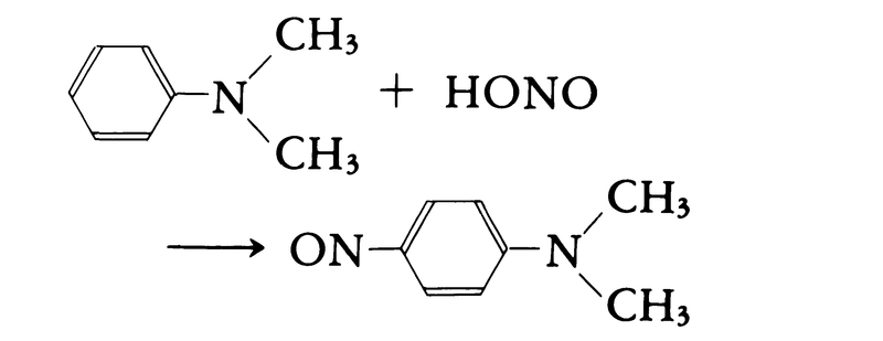 芳香族第三級アミンは一般に核置換によってC-ニトロソ化合物になる.