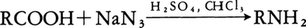 (3)-(c)シュミットSchmidt転位 カルボン酸に濃硫酸とアジ化ナトリウムを作用させると第一アミンが生成する。