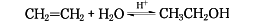 (2)エタノールの製法 現在工業的には石油から得られるエチレンを酸の存在下で水と反応させて製造されている。
