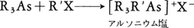 (R,R′はアルキル基,アリール基,Xはハロゲン)テトラフェニルアルソニウムイオン(C6H5)4As⁺は金属の錯陰イオンの沈殿剤として用いられている。有機置換アルシン類は,同様なホスフィンPR3とともに遷移金属に配位子としてはたらき,安定な錯体をつくる。これは,金属のd軌道に満たされた電子を,逆に受け入れることのできる空のπ軌道をもっているからである。
