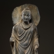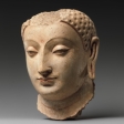 1世紀中葉から4世紀前半までのこの時期は、仏像の出現に特色づけられる。パキスタンの北部、現在のペシャワルを中心とするガンダーラ地方は、前2世紀からインド・ギリシア人、サカ人、パルティア人、クシャーナ(クシャン)人など異民族の相次ぐ支配を受け、外来文化の影響が顕著な地域であった。当地の造形活動は、ギリシア系文物を愛好したパルティア人により1世紀中葉に始まるが、それは非仏教的な主題を扱ったものであった。ついでクシャン人は、中央アジア南部からインド亜大陸北西部を領有する大帝国を築き、直接ローマ世界と交渉する道も開かれ、インドの仏教思想と西方の造形技法とが融合してガンダーラの仏教美術が生まれた。仏陀の姿は仏伝図浮彫りにごく自然に出現し、それは1世紀末のことと考えられるが、異説もある。そして2世紀中葉のカニシカ王のころには単独の仏像もつくられるようになった。この石彫中心の美術は、2世紀後半に最盛期を迎え、3世紀中葉には衰えるが、4~5世紀にはストゥッコ彫刻が展開した。その遺跡は、タフティ・バヒーをはじめとしてガンダーラ地方では枚挙にいとまなく、その北のスワート地方、東のタキシラなどパンジャーブ地方の一部、ストゥッコ彫刻で有名なハッダなどのアフガニスタンの一部にも及ぶ。