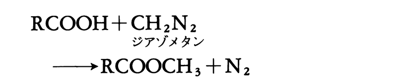 (3)カルボン酸にジアゾメタンを作用させる。この方法は貴重なカルボン酸のメチルエステルを合成する方法としてよく用いられている。