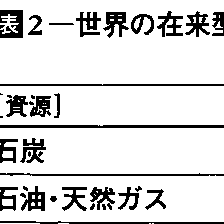 表2は,そのうち,これまで主として使われてきたエネルギー資源の推計量を示したものである。実際には,世界各国の資源量の調査を単一の機関が実行することは困難であるため,各国の調査結果を集計することになるが,資源の分類,資源量評価の基準等については,国際的に統一されたものがないため,今日得られる資源量に関する情報は,いずれもおおまかな指標という意味しかもっていない。