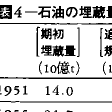 しかし,こうして得られた可採年数は,いわゆる限界的な年限を示すものではない。年々,探査活動が続けられ,新しい埋蔵資源量が発見されて追加されると,年々の確認可採埋蔵量は大きくは変わらない。石油の場合,年々,大量の消費がなされているにもかかわらず,前記の可採年数はほぼ30年前後で一定しており,90年代には40年を超えているのは,このためである(表4)。