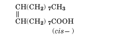 (Z)-9-octadecenoic acid.C18H34O4(282.47).CH3(CH2)7CH=CH(CH2)7COOH.油酸ともいう.グリセリドとしてほとんどあらゆる動物,植物油中に含まれている.とくにオリーブ油などの油脂類の主成分の一つ.無色無臭の油状液体.融点13.4 ℃,沸点204 ℃(6.7×102 Pa).