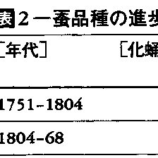 日本におけるカイコの品種改良は江戸時代から行われていて,当時はもっぱら系統分離法による育種がなされてきた。明治時代後半から大正時代にかけて,中国あるいはヨーロッパから中国種およびヨーロッパ種が輸入され,在来種である日本種との交雑育種がさかんに行われた。その結果,全繭重(けんじゆう),繭層重あるいは生糸量歩合(一定重量の繭からとれる生糸量の比率)といった,繭ならびに生糸生産にとって重要な形質が著しく向上した。一方,1906年外山亀太郎によって一代交雑種が有利なことが提唱され,14年以降これが実用化された。その後,現在まで農家が飼育するカイコはすべて一代交雑種が用いられている。一代交雑種は原種にくらべて,強健で成育が旺盛であるので飼いやすく,しかも全繭重などが大で生産性が高い。このような品種改良と一代交雑種の普及によって,在来種の繭層重は0.15~0.2gであったものが現在0.6g程度となり,また繭糸長は500m内外であったものが1500mにもなった。