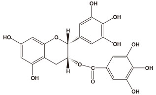 カテキンとエピカテキンは互いにジアステレオマーの関係にある.Uncaria gambirより得られるものはd-カテキンで,融点175 ℃.