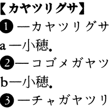 普通にカヤツリグサと呼んでいる草には,少なくともカヤツリグサ,コゴメガヤツリ,チャガヤツリの3種があり,いずれも田畑,荒地,道端に多いカヤツリグサ科の雑草である。
