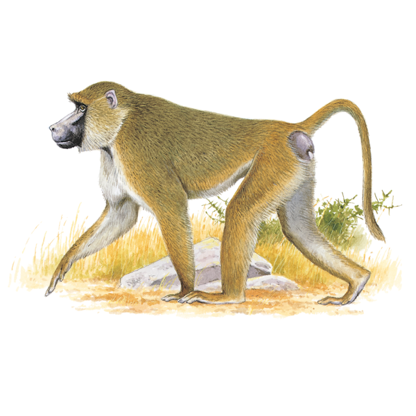 哺乳(ほにゅう)綱霊長目オナガザル科の動物。アンゴラからモザンビーク、タンザニア、ケニア、ソマリアに至る地域に分布する。体色は黄色みを帯びた褐色。四肢が長く、体つきはほっそりとしているが、雄は体重50キログラム、体長100センチメートルになるものがある。雌は小形である。サバナ(サバンナ)や疎開林内の地上で生活し、イネ科の穀果や根、木の葉と実、昆虫のほか、カモシカの幼獣などをとらえて食べる。40~100頭の複雄群をつくる。ドグエラヒヒやチャクマヒヒをも含めてサバンナヒヒとよばれることもある。