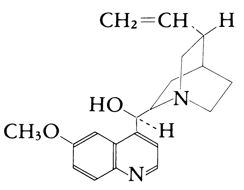 C20H24N2O2(324.41).キナ皮のもっとも重要なアルカロイド.アカネ科Cinchona officinalisの樹皮はキニーネを8% 含んでいるが,そのほかの同属植物の樹皮では1~4% 含む.