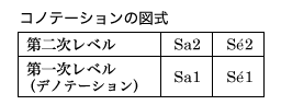 バルトは、デノテーションの上にコノテーションが重ねられていく多重的な意味作用を、ほぼ以下のように図式化した。