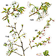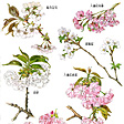 4月になると,全国各地に広く植栽されており,最も普通に花見の対象になっているソメイヨシノ(染井吉野)P.×yedoensis Matsum.の花が咲いてくる。明治初年ごろに東京の染井から広がり始めたもので,オオシマザクラとエドヒガンの雑種と考えられている。若枝や葉,花部などに毛があり,葉を開く前に大きな一重の花が木を埋めつくして美しく咲く。ソメイヨシノの仲間には,北アメリカでソメイヨシノの実生から選出された〈アメリカ〉やオオシマザクラとエドヒガンの交配によってつくられた三島桜,天城吉野(あまぎよしの)などがある。チョウジザクラ(丁字桜)P.apetala(Sieb.et Zucc.)Fr.et Sav.は本州と九州の山地に生え,花径1.5cmほどの小さい花が春早くに咲く。マメザクラ(豆桜)P.incisa Thunb.も花が早く開葉の前に咲き,木が全体に小型なので〈豆桜〉といわれている。関東,甲信地方から静岡県東部の山地に生えているが,富士,箱根地方に多いので,フジザクラまたはハコネザクラともいわれている。純白な花弁に,鮮緑色の萼をつけた緑萼桜(りよくがくざくら)や八重咲き,菊咲きなどの品種があり,本州の中部より西の山地には変種のキンキマメザクラ(近畿豆桜)var.kinkiensis(Koidz.)Ohwiが分布している。