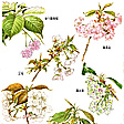 サクラは古くから日本人に親しまれ,日本の花の代表として海外にまで知られる。一般にサクラと総称しているものは,主として北半球の温帯と暖帯に分布しているバラ科サクラ属サクラ亜属の主として落葉性の樹木で,花がいっせいに開花して美しいものが多く,広く観賞されている。日本にはヤマザクラ,オオヤマザクラをはじめ,カスミザクラ,オオシマザクラ,マメザクラ,エドヒガン,チョウジザクラ,ミヤマザクラ,タカネザクラなど10種類ほどの自然種を基本として,変種や品種をあわせると約100ほどの種類が野生している。サクラ類の多くは陽樹で,しかも二次林を構成する生長の速い種が多いため,人家で栽植するにも好適であり,これらの野生種から多数の園芸品種が育成され,その数も200から300といわれる。古く奈良時代から栽培化された八重咲きのサクラが知られていたが,サクラの品種がまとまって記録されるようになったのは江戸時代からで,水野元勝の《花壇綱目》(1681)に40品種のサクラがのっている。その後,多くのサクラ図譜が出ているが,松岡玄達の《怡顔斎桜品(いがんさいおうひん)》(1758)には69品種,桜井雪鮮描画,市橋長昭撰の《花譜》,《続花譜》上と下,《又続花譜》,《花譜追加》の5冊(1803-04)には252図が出ている。大井次三郎著,太田洋愛画の《日本桜集》(1973)には154図がのっている。英語ではセイヨウミザクラのように実を食べるものをcherry,日本で改良された花をみるサクラをJapanese cherry,flowering cherry,Japanese flowering cherryと呼び,区別している。