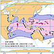 ダーウィン以来の研究を踏まえて,サンゴ礁の地形と地理的分布を第四紀の海水準変化と海水温変化との関係において説明するモデルが図2である。このモデルおよび図1から氷期にも礁の形成があった核心域では堡礁,沈水した島棚ならば環礁が形成されること,間氷期に向かって海水準と海水温の上昇に伴い礁の形成があった周辺域では,裾礁とエプロン礁が,沈水している島棚の場合は卓礁が形成されることが理解できる。最後にビキニ環礁やエニウェトク環礁などで行われた試錐試料ですでに知られているように層厚1000mに達する礁石灰岩の存在と図1と図2との関係について少し触れておきたい。少なくとも第四紀の中期以降,海水準と海水温はほぼ規則的に似たような規模で少なくとも十数回は昇降を繰り返してきた。もしこの間に地盤の上昇が持続すれば隆起裾礁や隆起堡礁など,いわゆる隆起サンゴ礁となる。一方サンゴ礁からなる海洋島は海洋プレートといっしょに水平方向に地理的位置を変えつつ,垂直的にはゆっくりと沈降してきた。後者の点においてダーウィンの沈降説は海洋島のサンゴ礁の地形の説明に有効であり,厚い礁石灰岩の存在を説明し得る。また,沈降説は第三紀をも含む長い地質時代のサンゴ礁の構造と分布の説明に有効で,それ以外の説明は,第四紀に入ってからの海水準や海水温変化に対応する礁地形の説明に有効なものである。