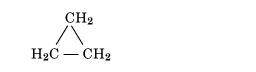 構造は図に示すとおりで,C-C-Cの結合角60度は正四面体角109.5度にくらべて著しく小さいため,環にはひずみがかかっている。その結果シクロプロパン環は開裂しやすく,またエチレン結合に似た性質を示す。たとえば,エチレン結合に付加する試薬である硫酸,臭化水素,臭素と反応して,それぞれ硫酸水素プロピル,1-ブロモプロパン,1,3-ジブロモプロパンを生成する。