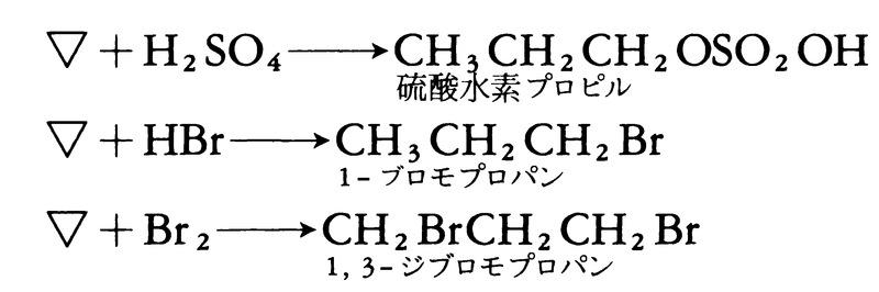 また,白金触媒存在下で容易に水素と反応してプロパンとなる。