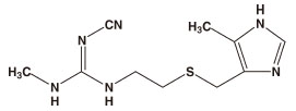 N-cyano-N′-methyl-N″-[2-[(5-methylimidazol-4-yl)methylthio]ethyl]guanidine.C10H16N6S(252.34).5-メチル-4-[(2-アミノエチル)チオメチル]イミダゾールと1-シアノ-2,3-ジメチルイソチオ尿素から得られる.