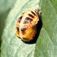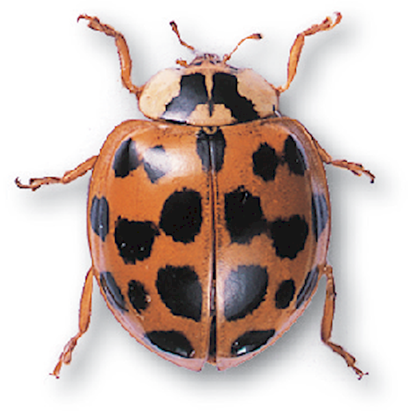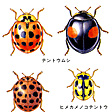 甲虫目テントウムシ科の昆虫の総称,またはそのうちの1種を指す。テントウムシHarmonia axyridisは日本各地にふつうに見られる種類でナミテントウとも呼ばれる。体長7~8mm。シベリア,中国,台湾などにも分布する。上翅の斑紋は変化に富むが,地色が赤色の個体(紅型),黒地に赤色多紋の個体(斑型),黒地に赤色4紋の個体(四紋型),黒地に赤色2紋の個体(二紋型)に分けられる。成虫は春から秋まで活動するが,7月下旬から9月上旬にはその数が減る。卵から成虫までの期間は4~6月では約1ヵ月間で短い。幼虫は成虫と同様にアブラムシ類を捕食する。黒い幼虫の体はやがて黄赤色紋にいろどられ,紋の形(第1腹節から第5腹節まで左右に帯状紋)などで他種から区別できる。4回目の脱皮で蛹化(ようか)する。雌の新成虫は羽化して約2週間後には産卵を始める。1卵塊は20~40卵が多い。10月下旬ころから人家,草の根もと,落葉の下などに移動し,集団で冬眠をすることが多い。マツのアブラムシを捕食するクリサキテントウH.yedoensisの成虫は本種の成虫に酷似し,容易に区別できないが,幼虫の斑紋が異なる。