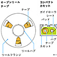 (2)カセット方式 オープンリール方式のリールの取り付け操作の煩雑さをなくし、構造も一般に小型である。携帯に便利なものから高級なものまで多くの種類がある。