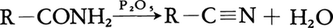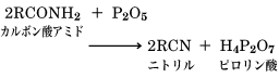 (1)カルボン酸アミドの脱水 脱水剤としては五酸化リンP2O5,塩化チオニルSOCl2等が用いられる。