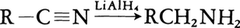 ニトリルをエタノール中でナトリウムと反応させるとアミンが得られる。また、乾燥塩化水素を反応させると塩化イミドイルが得られ、これは有機合成の有用な中間体である。