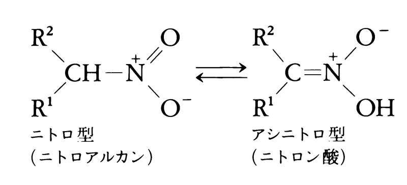 などの方法により得られる.低級のものは無色の芳香ある液体で,沸点は比較的高いが,分解せずに蒸留される.水に難溶.ニトロ基の極性のため,3.5~4Dという大きな双極子モーメントをもつ.また,アルカリと塩をつくって水に溶ける.これは,ニトロ化合物が異性化してaci-ニトロ化合物をつくり,擬似酸としてはたらくからである.二重結合のC原子にニトロ基がついた化合物(α-ニトロオレフィン)は,アルデヒドやケトンと第一級ニトロパラフィンとの作用で得られる.低級のものは無色または淡黄色の液体で,強い催涙性がある.また,その二重結合が活性化され,付加反応や重合反応を起こしやすい.芳香族ニトロ化合物は,普通,芳香族化合物に直接硝酸を作用させてつくられる.この方法で合成することが困難な化合物は,ジアゾ反応や芳香族アミンの酸化などにより合成される.芳香族ニトロ化合物は,一般に有色の液体または固体で,水に溶けにくく,アルカリと塩をつくらない.ニトロ基は鉄と塩酸または接触還元によりアミンとなり,亜鉛末と塩化アンモニウム溶液でヒドロキシルアミンになる.