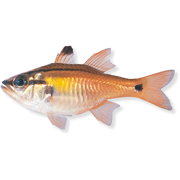 硬骨魚綱スズキ目テンジクダイ科コミナトテンジクダイ亜科スジイシモチ族に属する海水魚。太平洋側では青森県から、日本海側では山形県から九州の南岸まで、宮古島、慶良間(けらま)列島、台湾、朝鮮半島南岸、中国、フィリピン、インドネシア、オーストラリア北西岸などの海域に広く分布する。体は中程度の長楕円(ちょうだえん)形で側扁(そくへん)し、目は大きく、眼径はおよそ吻長(ふんちょう)に等しい。口が大きく、上顎(じょうがく)の後端は目の中央下に達する。上主上顎骨はない。前鰓蓋骨(ぜんさいがいこつ)は隆起部分には鋸歯(きょし)がないが、縁辺にはある。背びれは胸びれ基底上方から始まり、2基でよく離れ、第1背びれは7棘(きょく)、第2背びれは1棘9軟条。臀(しり)びれは第2背びれ起部下方から始まり、2棘8軟条。胸びれは14軟条。頭部と体の鱗(うろこ)は櫛鱗(しつりん)で、側線有孔鱗数は25枚。鰓耙(さいは)は上枝に6本、下枝に18本。尾びれの後縁はわずかにくぼむ。体色は桃赤色で、腹側部で淡い。上顎先端から目を通り鰓蓋上部の後端に達する黒色帯と、その上方を平行に走り、第2背びれの後端基部下に達するすこし細い黒色帯がある。腹部には縦帯がない。尾柄(びへい)の基部に瞳孔(どうこう)より小さい黒色の円斑(えんはん)がある。第1背びれの先端部は黒色。内湾から水深3~100メートルの岩礁周辺の砂泥底に群れをつくってすみ、もっとも普通にみられる種である。産卵期の7~9月には雌雄は対(つい)になる。体色は鮮やかな橙(だいだい)色になり、上顎の先端は突出する。産み出された卵は粘着性の糸で互いに連なり、これを普通、雄が口にくわえ、孵化(ふか)するまで保護する習性がある。全長15センチメートルほどに達する。小形の魚のため食用としての価値は少ない。本種は2014年に、DNAの結果に加えて、前鰓蓋骨の腹縁が骨質であることなどの特徴をもつことから、長く慣習的に使用されてきたコミナトテンジクダイ属(旧、テンジクダイ属)Apogonからスジイシモチ属へ移動した。