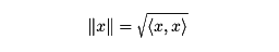 と置くと‖ ‖はHのノルムになる。このノルムから導かれた距離に関し完備となるとき、Hをヒルベルト空間という。明らかにヒルベルト空間はバナッハ空間である。