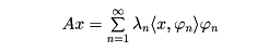 となるxが存在するとき、λをAの固有値、xを固有値λに対する固有ベクトルということにすると、次のことが成り立つ。「自己共役、完全連続な作用素Aに対し、固有値の列{λn}:|λ1|≧|λ2|≧……→0と、対応する固有ベクトルの列{
