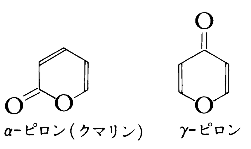 【Ⅰ】α-ピロン(2-ピロン):クマリン酸の水銀塩を加熱脱炭酸してつくる.融点5 ℃,沸点206~209 ℃.