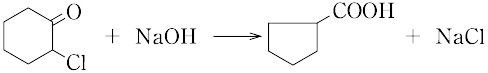 2-ハロシクロヘキサノンでは,環の縮小が起こり,シクロペンタンカルボン酸になる.