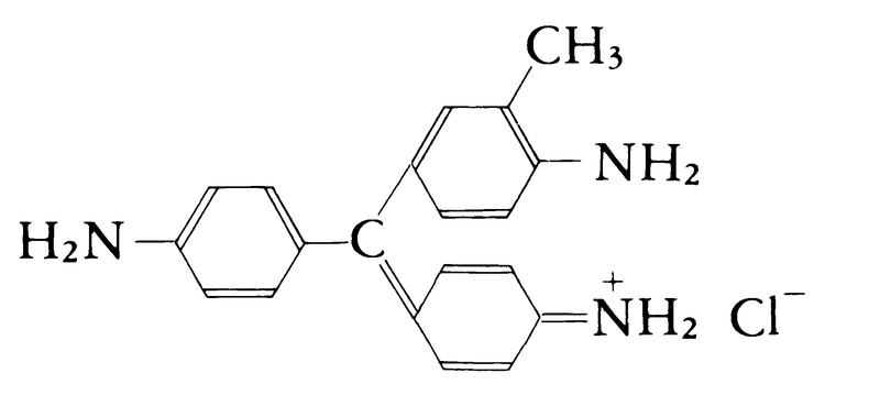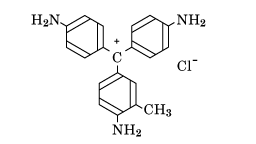 C20H20ClN3(337.85).マゼンタ,ローザニリン,C.I.Basic Violet 14ともいう.トリフェニルメタン染料の一種.鉄粉と塩化亜鉛の存在下,アニリン,o-およびp-トルイジンの混合物をニトロベンゼン中で加熱すると得られる.