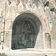 彫刻は、アケメネス朝では宮殿・王墓に付属した浮彫りが多かったが、ササン朝では各国王がつくらせた摩崖彫刻が、王朝発祥の地ファールス地方を中心に約30残っている。ナクシュ・イ・ロスタムのアルダシール1世、シャープール1世などの叙任式や戦闘の場面の浮彫り7面や、大小2個の石窟(せっくつ)からなるターク・イ・ブスタンのホスロー2世の騎馬や狩猟などの浮彫りがとくに有名である。