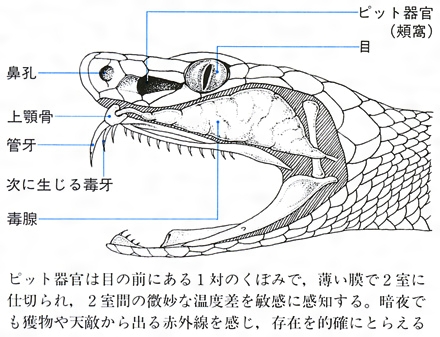 爬虫(はちゅう)綱有鱗(ゆうりん)目クサリヘビ科マムシ亜科マムシ属に含まれるヘビの総称。この属Agkistrodonの仲間は有毒で、左右の目の前下方に赤外線に敏感なピット器官pit(頬窩(きょうか))があり、12種が日本を含むアジア全域および北アメリカに分布する。クサリヘビ科の毒ヘビは、ピット器官をもつマムシ、ハブ、ガラガラヘビなどがマムシ亜科、ピット器官を欠くものがクサリヘビ亜科に分けられる。
