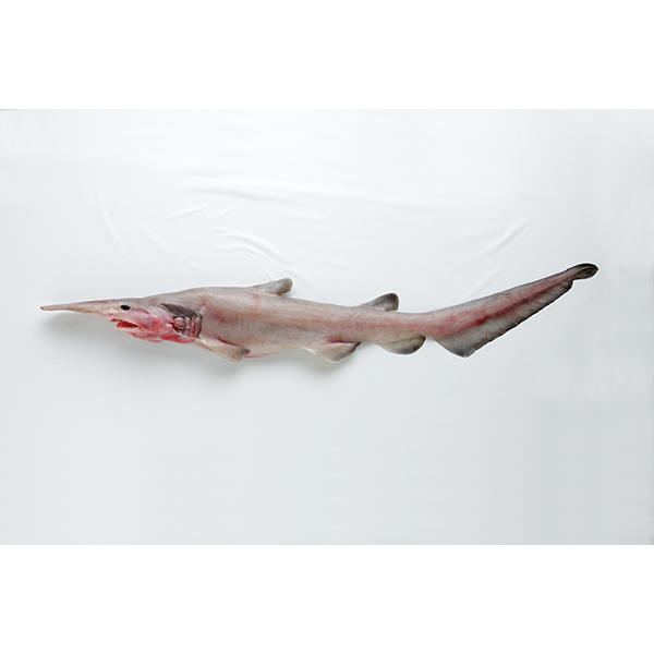 ネズミザメ目ミツクリザメ科の海水魚。全長 6mに達する大型のサメ。体はやや細長く,後方は側扁し,尾鰭はきわめて長い。吻は長く突き出し,先がとがっている。歯は基底板に 2根をもち,細長く錐状鰓孔の最後の孔は胸鰭基底上方にある。眼の後方にはやや大きい呼吸孔がある。体色は赤灰色がかった白色。底生性で(→底魚),相模湾駿河湾熊野灘土佐湾,カリフォルニア,ポルトガル,スリナム,南アフリカ共和国などの深海から得られる。