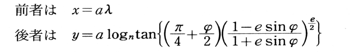 となる。この図法は正角であるだけでなく,等角航路(航程線)が図上常に直線で表されるため,海図の図法として欠くことができない。