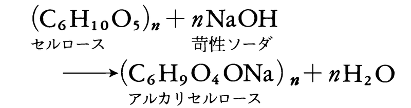 アルカリセルロースは二硫化炭素と反応させると,セルロースキサントゲン酸ナトリウムが得られる。