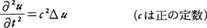振動,または波動の現象では,時刻tにおける点xの変位u(t,x)があまり大きくないときは,それが時間tとともに変化する状態は次の方程式で記述される。