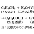 六価クロム化合物である二クロム酸カリウムや三酸化クロムは強力な酸化作用があり、有機合成においてもしばしば酸化剤として使われていた。の反応例に示すように、酸化剤の六価クロムは有機物を酸化する際に自らは還元されて無害の三価クロムになる。すなわち、六価クロム化合物は還元されやすく、土壌中でも細菌などの有機物により還元されて、三価クロムになり無害化されるのである。しかし、多量に存在すると土壌による無害化は追いつかず、土壌汚染を生ずることから、六価クロムの毒性が社会問題になり、あまり使われなくなっている。六価クロムには水質、土壌、地下水について環境基準値が設定されていて規制されているが、クロム鉱滓(こうさい)の埋立地や化学工場跡地で多量の六価クロムが埋め立てられている場合には、基準値を超える量が検知された例がある。