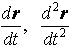 例えば一つの質点が三次元空間の中を運動しているとき,その位置を表すベクトルr(x,y,z)は時間tの関数としてr=r(t)と表される。ベクトル値関数rの変数tに関する微分は,ふつうの実数値関数のときと同様に,