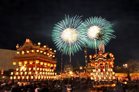 祭礼に出る練り物の屋台。山、鉾(ほこ)、人形などで飾りたてて、これを大ぜいで担ぐか車に乗せて引く。ダシは「出しもの」の義で、祭りに招き寄せる神の依代(よりしろ)(神座(かみくら))として、屋台の中心に突き出した飾りの名に由来する。山、鉾、屋台、だんじりなどの作り物も同じ意味のものである。その古い姿は平安時代の文献にみえる大嘗祭(だいじょうさい)の標山(しめやま)にみられる。標山とは、神の標めた(占有・領有した)山という意味で、神を標山に招き寄せて、神泉苑(えん)から宮中の祭場まで引いてくる。この移動式神座の形式は、中世になると風流(ふりゅう)化され、京都八坂(やさか)神社の祇園(ぎおん)祭の山鉾のように風流の飾り物を美しく仕立て華美になった。近世になると祇園祭の山鉾をモデルとした山車が地方都市に普及し、全国的に行われるようになった。その名称、形態はさまざまであるが、東日本では山車、屋台などとよび、西日本では笠(かさ)鉾、山笠、山鉾、楽車(だんじり)(車楽、地車、壇尻、段尻とも書く)、曳山(ひきやま)などとよぶことが多い。これらは笛、太鼓、鉦(かね)の祭囃子(ばやし)を奏するが、山車の上でからくり人形、歌舞伎(かぶき)芝居、舞踊を演じる所もある。山車、屋台の出る祭礼では、京都祇園祭、飛騨(ひだ)高山祭、近江(おうみ)長浜曳山祭、博多(はかた)祇園祭、秩父(ちちぶ)夜祭などが有名である。