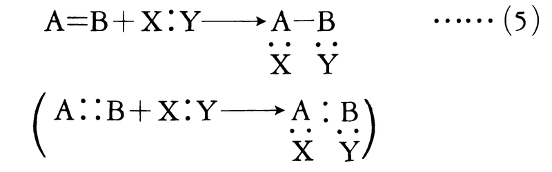 A:B─→A:⁻+B⁺またはA⁺+:B⁻ ……(2)